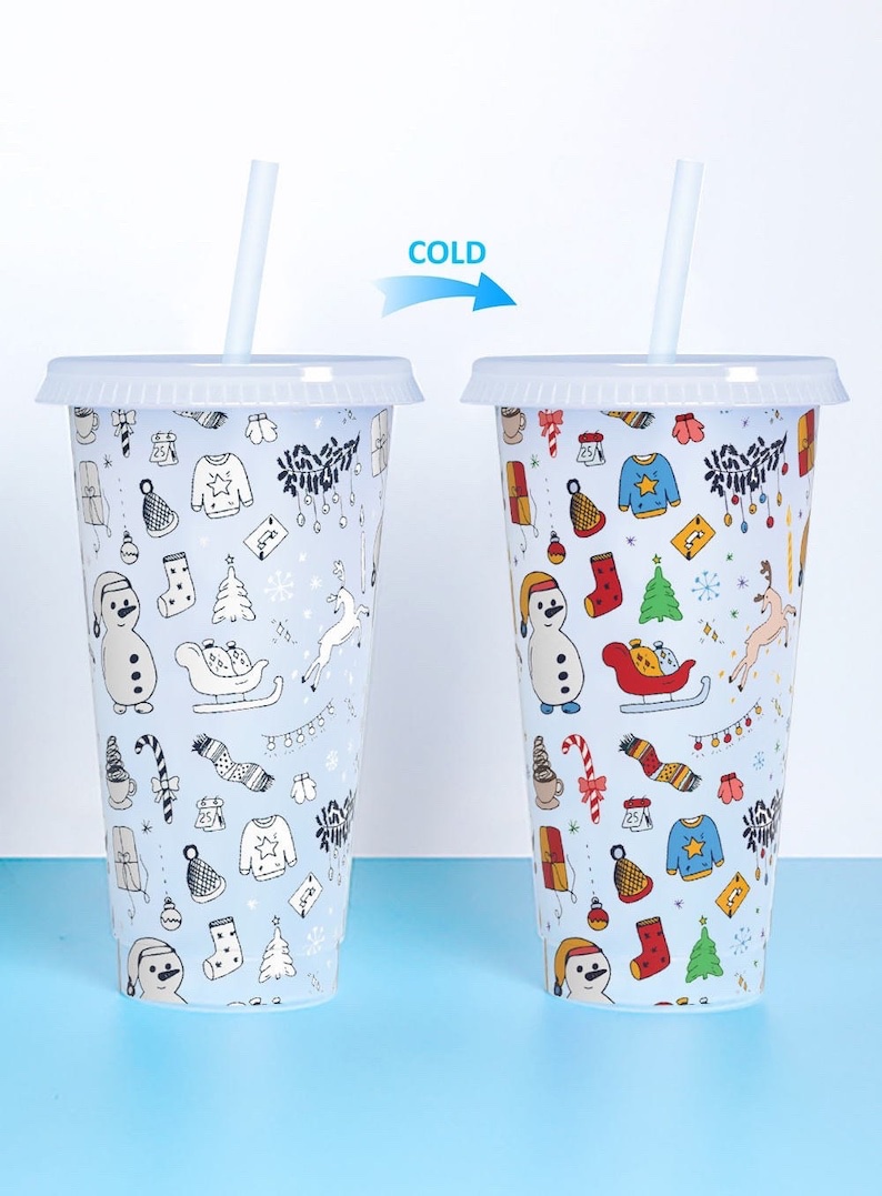 Experience the magic of Christmas with our Colour Changing Christmas Cold Cup! This 710ml cup is perfect for adding your favorite ice-cold drink and watching it come to life in vibrant colors. With its large capacity, you can enjoy your refreshing beverage all day long. Get into the festive spirit and make every sip feel magical this holiday season!