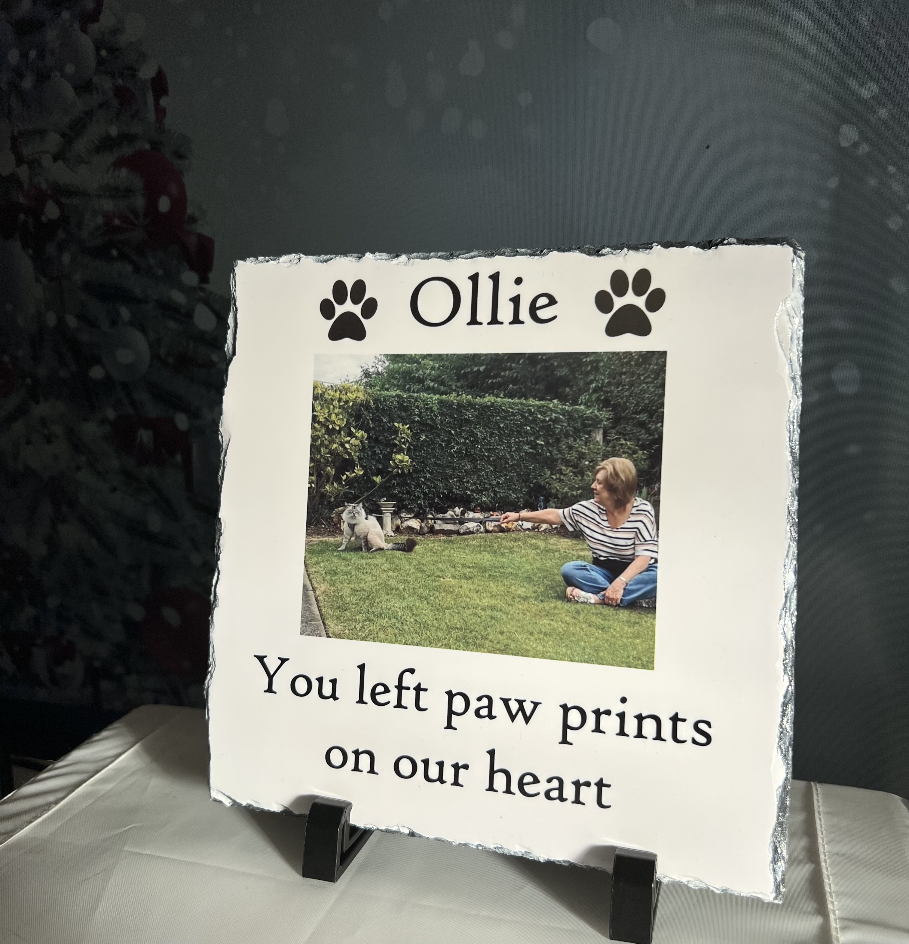 Our glossy 20x20cm photo slates are a lovely keepsake or gift for someone who has lost a loved one. Be it person or pet, our slates make the perfect remembrance piece.