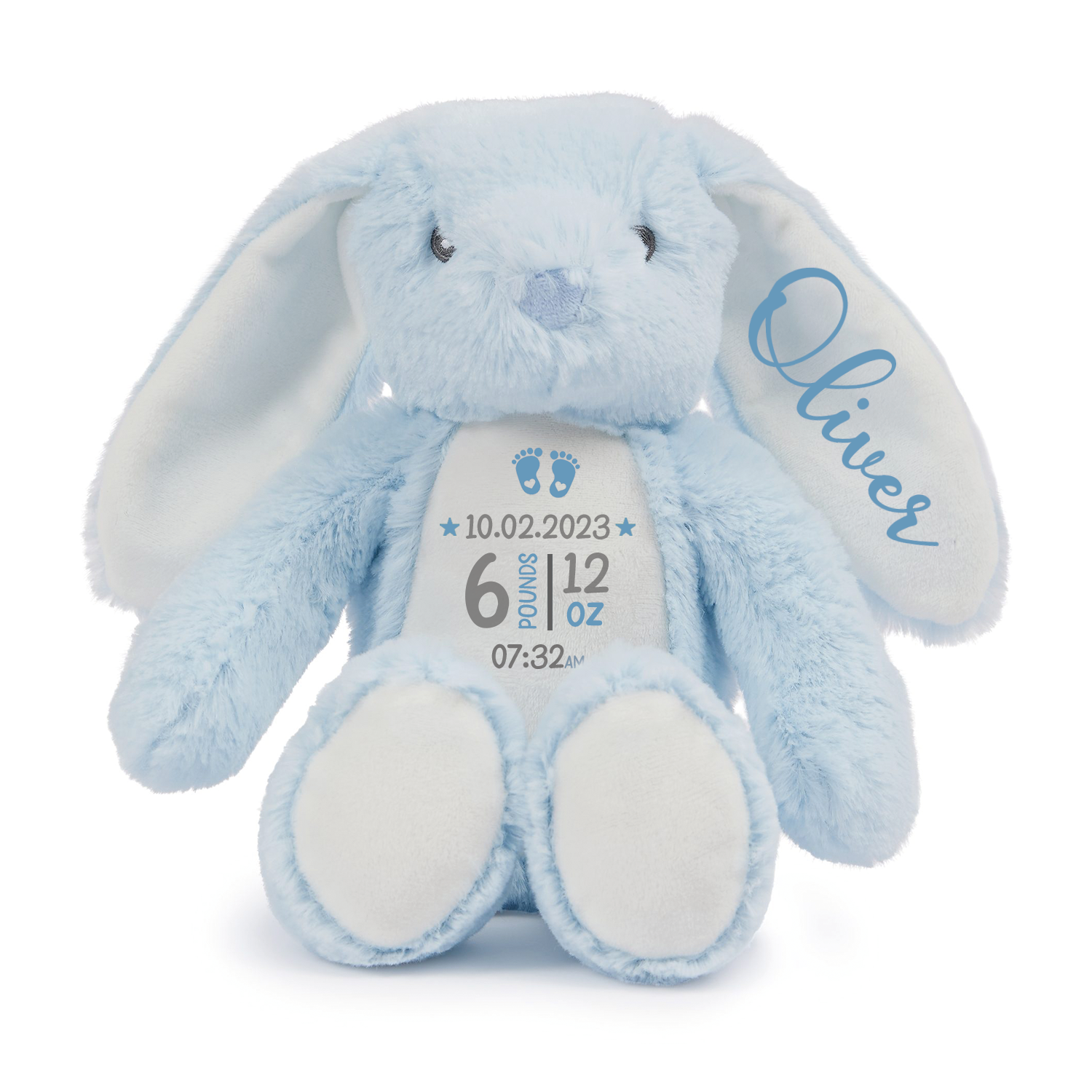 Our plush personalised teddies make fantastic keepsakes for any baby. They are personalised with the child’s name, date of birth, birth weight and time of birth. When completing the fields, please add AM or PM to the time of birth.